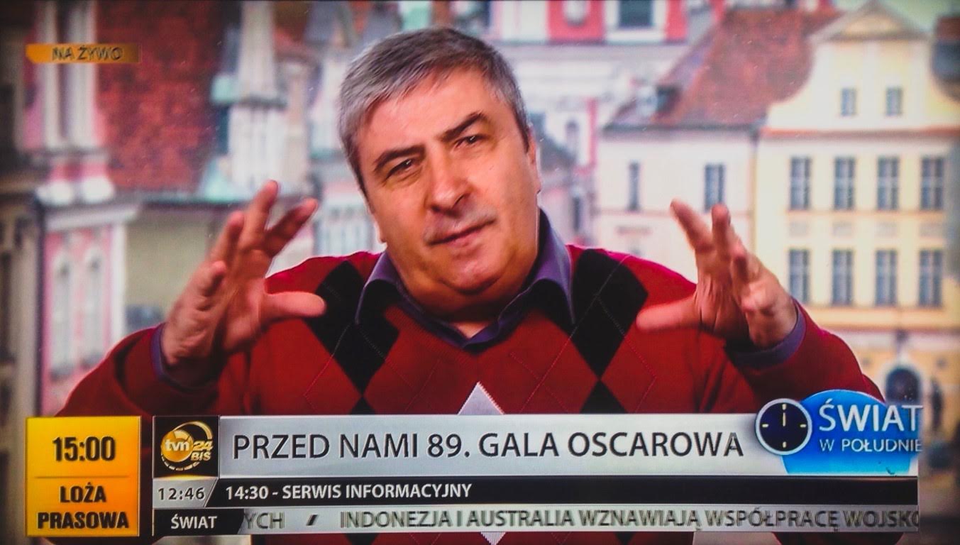 Oscarowa jazda po mediach. W poniedziałek od 7-mej rano do 21.00. A tu pan operator wykonał zdjęcia artystyczne.: