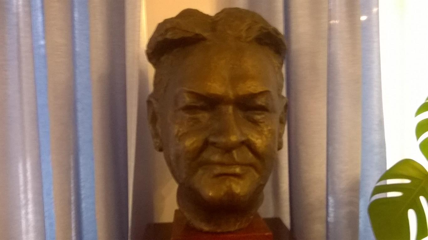 Białystok. Muzeum Alfonsa Karnego. Wszystkie rzeźby były podpisane, z wyjątkiem tej. Nie rozumiem dlaczego. Głowa jak każda.: