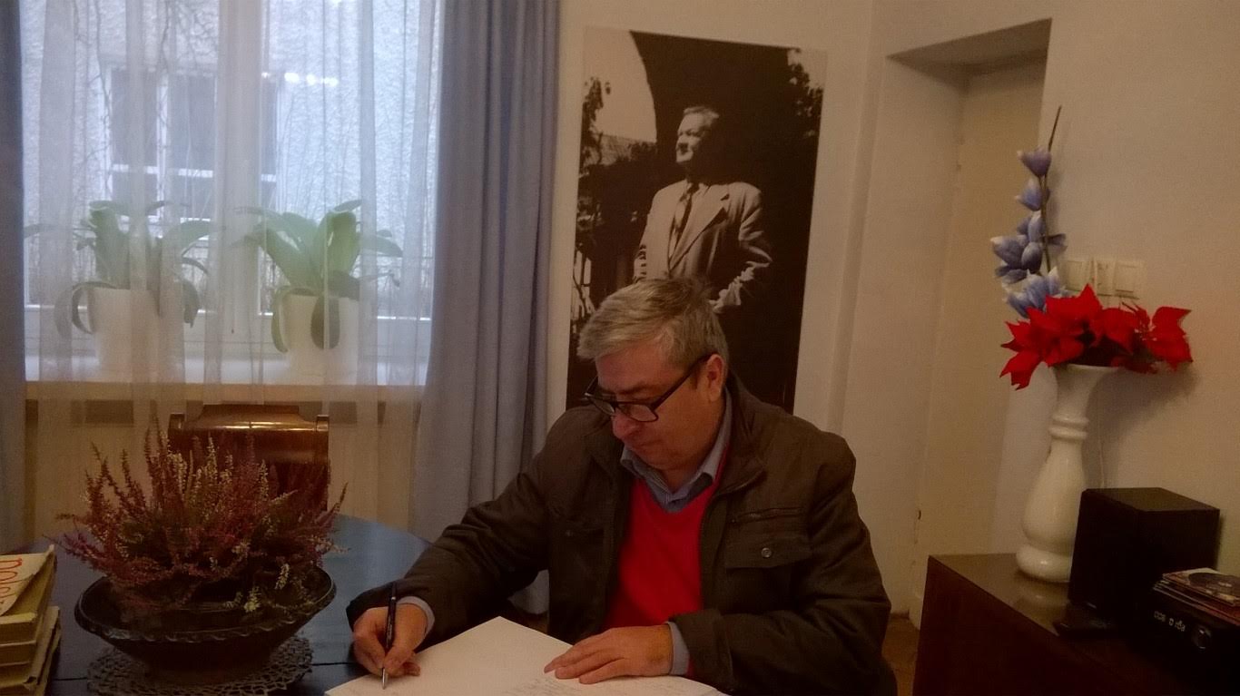 Pogadaliśmy z przemiłą i kompetentną gospodynią. Ja próbowałem się popisywać, że pamiętam „Elegię o śmierci Ludwika Waryńskiego”. I już wpisujemy się do księgi gości.: