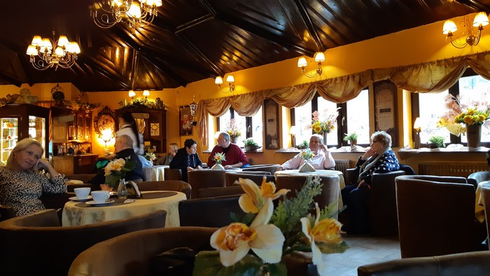 Jeszcze rzut oka za siebie na Książ, księżnę Daisy itd. Windy wiozą w podziemia, gdzie stoi „złoty pociąg”, ale nam starcza jeszcze do pierszego… Na obrazach fotografie obrazów Vermeera, których kopie niegdyś tam wisiały.Przypomniały sie niedawne Delfy…: