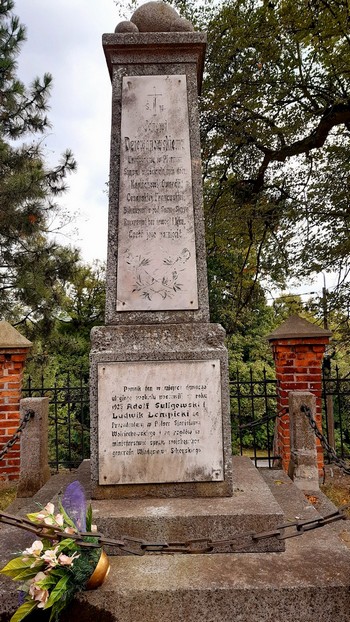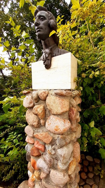 Jesienny spacer po Zaniemyślu (na południe od Poznania, nad jeziorami). Pomnik poety Berwińskiego po remoncie. No, ale kasztany to już wyraźnie sygnalizują przestawienie wajchy.: