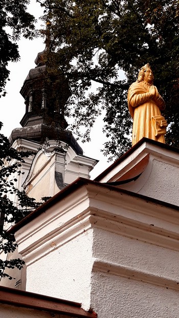 Z ostatniego wyjazdu. Ziemia Dobrzyńska. Obory. Opactwo karmelitów. Przygotowania do Bożego Narodzenia idą pełną parą. Szopka gotowa, liczne grono adoracyjne też. Obok kościoła popiersie Szopena (może przyjeżdżał tu z niedalekiej Szafarni?), choć niepodpisane. Anonimowy kandydat na ołtarze?: