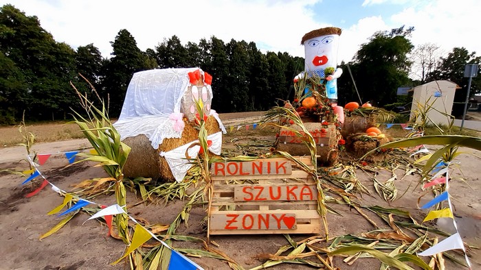 Przy drogach jak kraj długi dekoracje dożynkowe.: