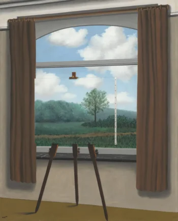 Z sieci: „René Magritte (+1967) posiadał wyjątkową zdolność do insynuowania wątpliwości co do rzeczywistości. Uważany jest za jednego z ojców surrealizmu. Surrealizm od razu przedstawił się jako rewolucyjna awangarda, wychodząca poza rzeczywistość, podkreślając w ten sposób jej nowy oniryczny wymiar złożony ze snów, paranoi , wolnych skojarzeń i przejawów szaleństwa, uwalniając w ten sposób nieświadomość od ograniczeń mentalnych. Do najbardziej wpływowych artystów tego ruchu, oprócz Magritte’a, zaliczają się Salvador Dalí, Joan Miró, Man Ray i Yves Tanguy”.