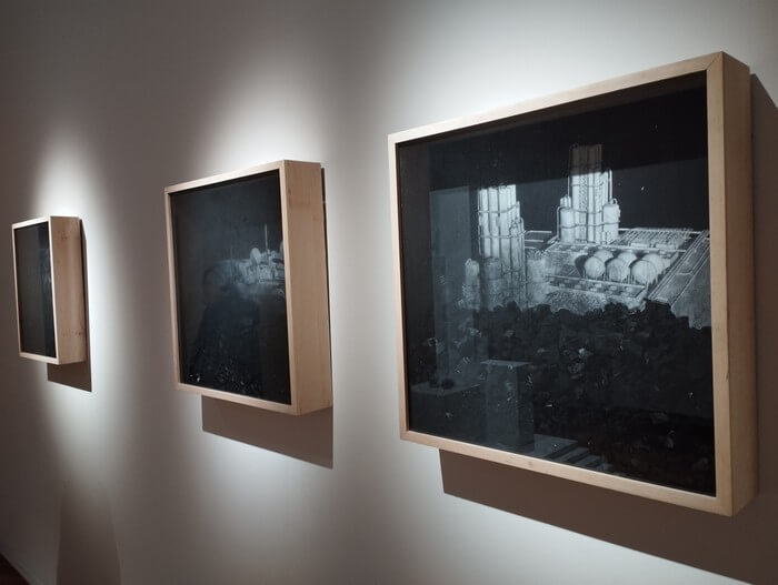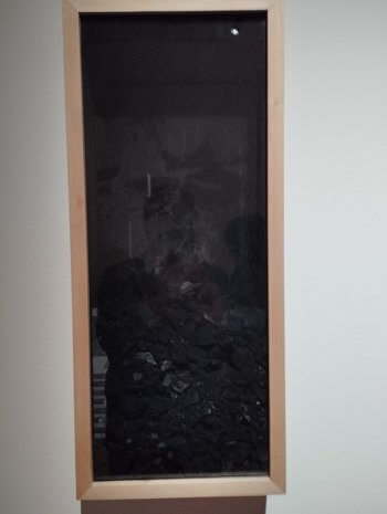 Z trasy. Łódź, Muzeum przy Więckowskiego. Tutaj odkryłem przyczyny „przejściowych trudności” z węglem. Oto jeden z artystów użył węgla do skonstruowania całego cyklu (!) obrazów. Nie napisano, po ile kupił ten węgiel, ale to go przecież nie usprawiedliwia.: