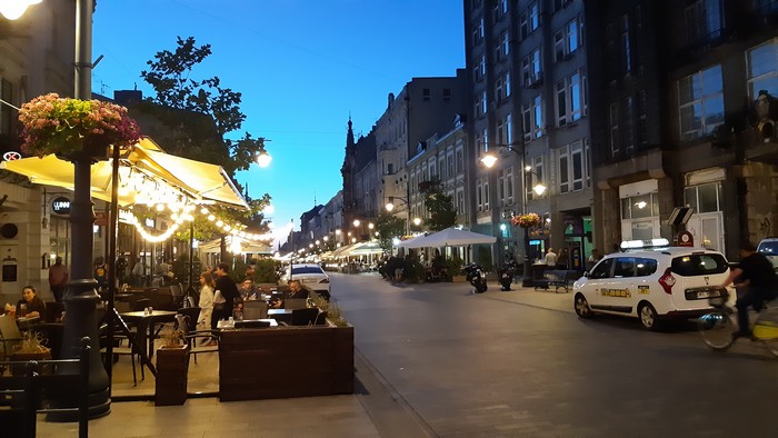 Wreszcie wieczorna Łódź. Niestety nasz stały lokal przy Piotrkowskiej w remoncie (… skończyła się pewna epoka.) Kolacja więc tuż obok, w Sphinksie, ale co to za kolacja bez deseru „Tuwim”..?: