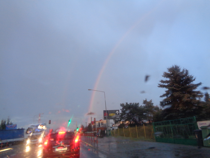 Zlało nas z Dorotą w lesie, ale na koniec na trasie wzeszła tęcza.: