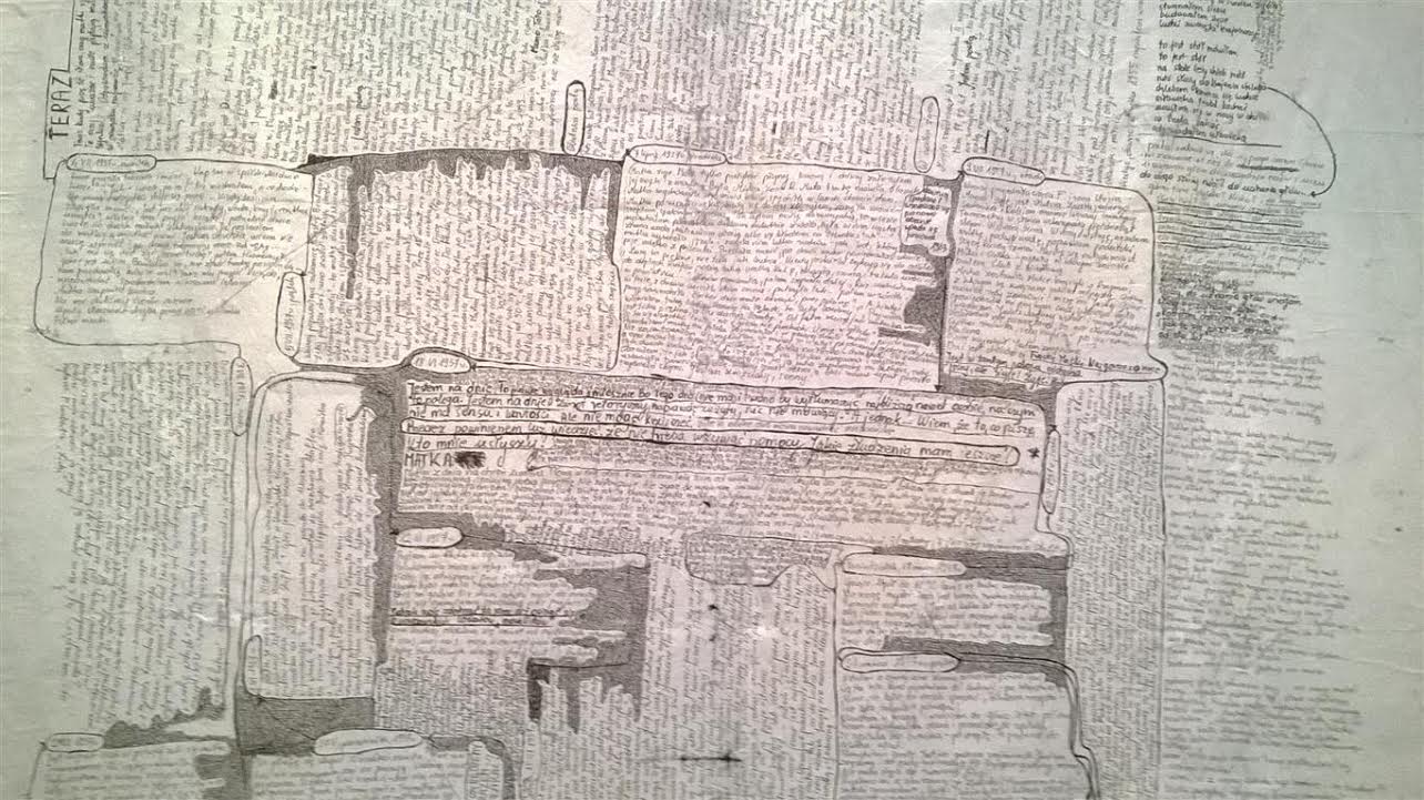 Z zaszłości. Dzieło sztuki w krakowskiej galerii współczesnej. Wróciły wspomnienia sprzed trzydziestu kilku laty. Podobnie wyglądały moje ówczesne teksty zanim zredagowałem je w wersji wysyłanej do redakcji. Tylko były znacznie bardziej pokreślone. Po ukończeniu polonistyki (z wyróżnieniem) nie umiałem napisać po ludzku pięciu zdań. Teraz umiem niewiele więcej – ale zawsze!: