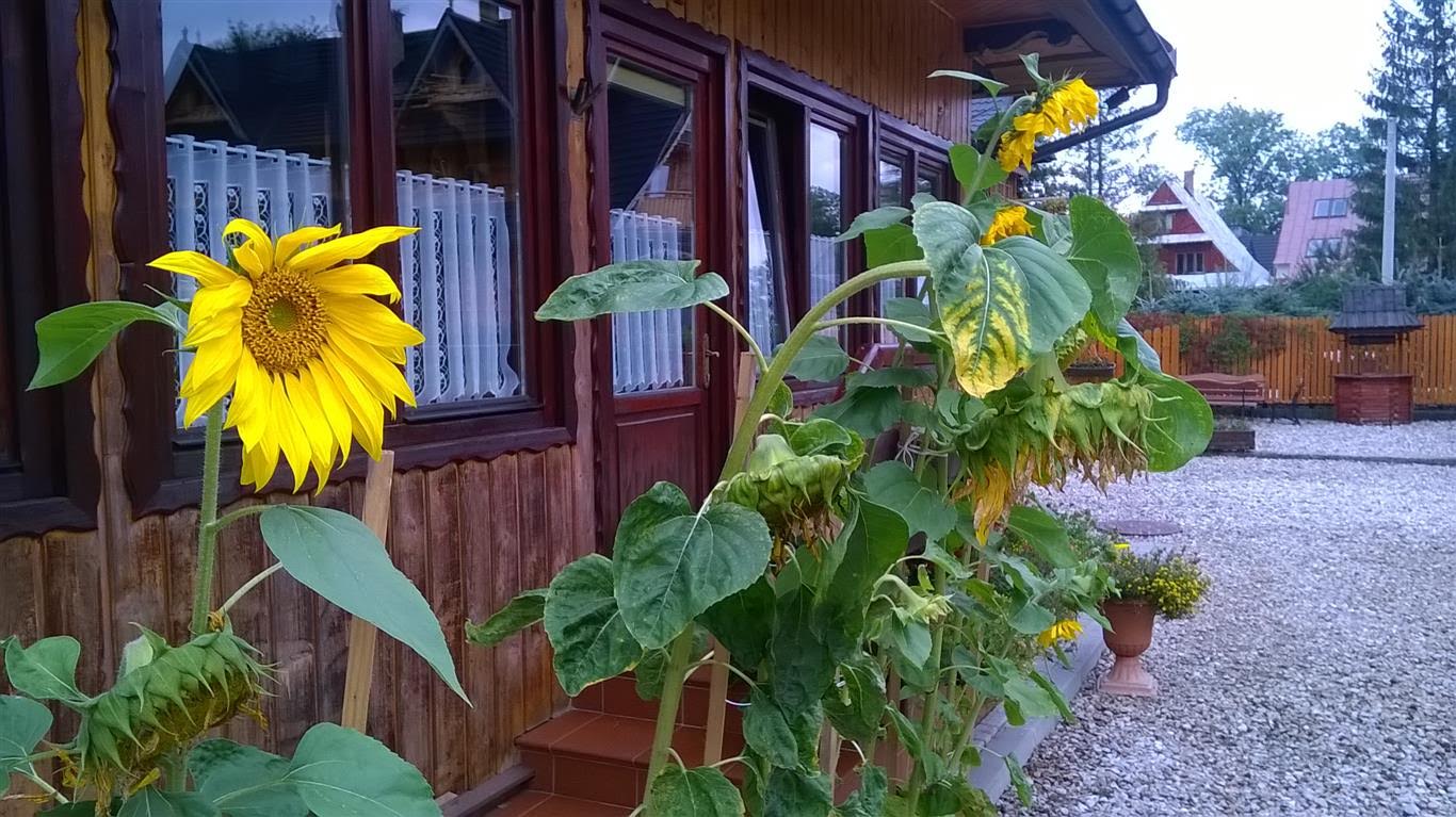 Na Zakopiance korek na kilka kilometrów – zdzierają nawierzchnię. W końcu dojechaliśmy do domu wypoczynkowego Uniwerku. Słoneczniki powoli mają się na jesień.: