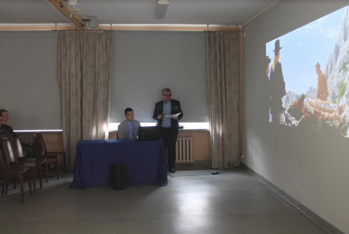 Wczoraj w Zielonej Górze, w Technikum Budowlanym w ramach Festiwalu Kultur Krajów Europy Środkowej prelekcja o kinie tego regionu Europy. Z konieczności punktowa, pobieżna. Maklakiewicz z Himilsbachem rozmawiają o kinie polskim.: