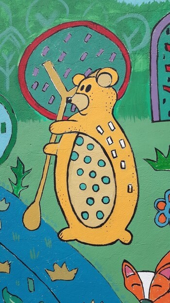 Lasy po wczorajszym deszczu już z lekka przewiane, więc 10 kilometrów prawie po suchym. Zaczynamy jednak od kontemplacji sztuki, czyli od murala na wiejskiej świetlicy w Szreniawie.: