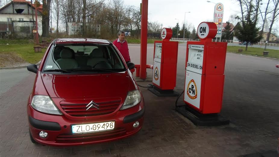 Samochodem do Wrocławia. Jedyny zabytek, jaki trafił się nam na trasie to pewna pompa na stacji benzynowej.: