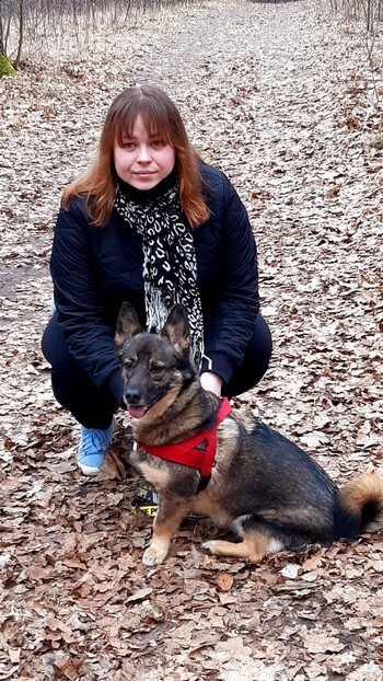 Spacer w podpoznańskich lasach. Tym razem bardziej rodzinny. Ala Kot i suczka Szelma.: