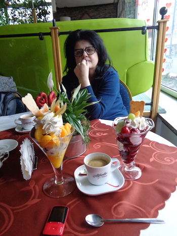 Zaległa Łódź. Ledwie sprzed tygodnia. Ta sama kawiarnia, te same desery lodowe (dla mnie Tuwim), ta sama Dorota, niestety…: