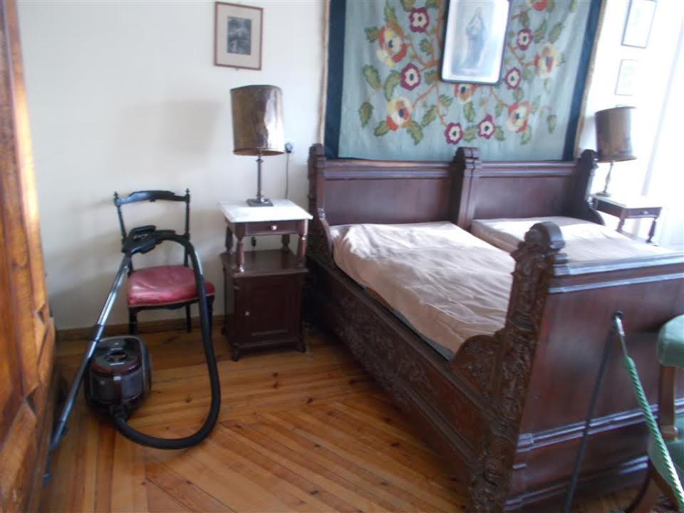 Tymczasem sprawiliśmy dworkowym przykrą niespodziankę. Najpierw nie odpowiadali na dzwonki do drzwi, potem byli nieprzyjemnie zdziwieni, że ktoś tu czegoś chce (w godzinach otwarcia muzeum). No, bo wszędzie były piątkowe porządki. Mycie posadzki, odkurzanie, np. w legendarnej sypialni Iwaszkiewiczów: