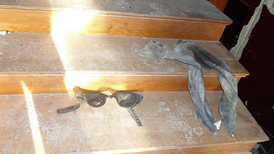 A na schodach pozostałości ostatniej balangi (biustonosz i wysokie damskie buty). Ech, gdybym tak miał ze 30 lat mniej…: