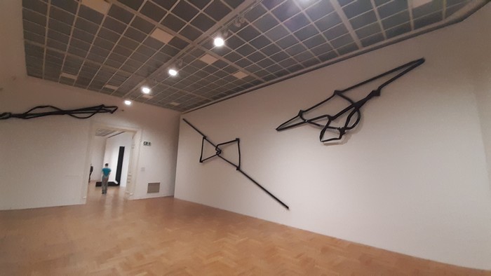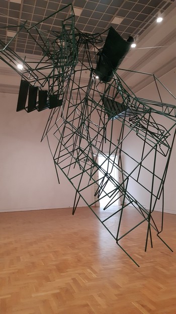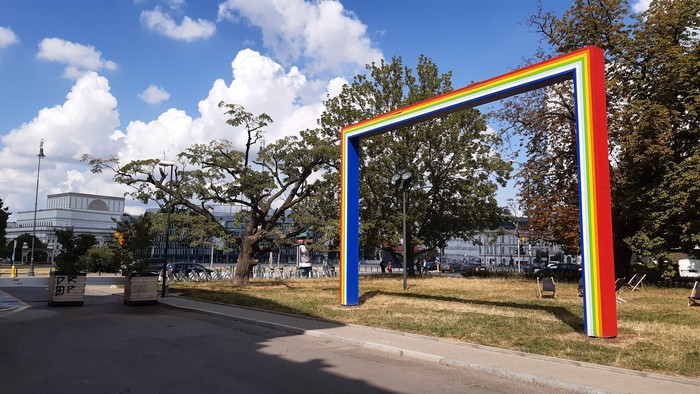 Z wyjazdu. Warszawa, Zachęta. Wstrząsająca retrospektywa prac Moniki Sosnowskiej. Poza tym zwiedzających wita wiadoma brama. A gdyby kto zapomniał, że jest w Warszawie, to wystarczy zerknąć na szybę najbliższego samochodu.: