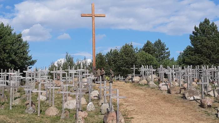 Giby. Cmentarz ofiar Obławy Augustowskiej. Akurat WOT ćwiczył zmianę warty.: