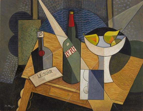 Bela de Kristo, Martwa natura z gazetą, owocami i butelką: