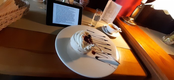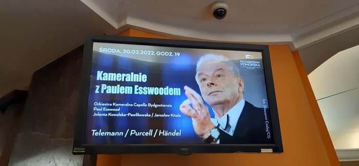 W środowy wieczór – koncert w Filharmonii Pomorskiej w Bydgoszczy. Barok. Muzyków bydgoskich prowadził zza pulpitu Paul Esswood. Nareszcie jakaś odmiana, bo ciągle tylko Eastwood i Eastwood. Poza tym człowiek się jeszcze nie przyzwyczaił, że do Bydgoszczy jedzie się praktycznie autostradą (i to bez remontów!), więc znacznie szybciej niż kiedyś. Stąd margines czasu, więc kawiarnia, w kawiarni beza. Normalnie w życiu bym do bezy nie zastartował!: