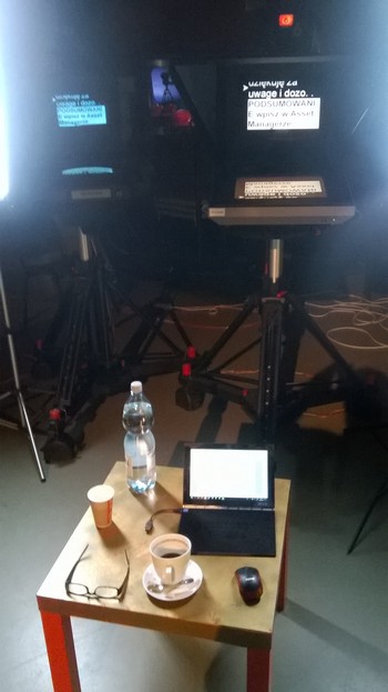 Wcześniej nagrania w TV. Zjęcie pionowe pokazuje widok, jaki mam przed sobą, gdy mówie do kamery. Nie jest to pejzaż z Chełmońskiego…:
