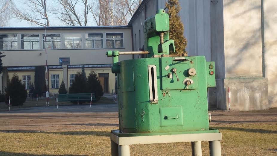 Ze wspomnień. W Łowiczu, przed fasadą technikum, szacowne urządzenie techniczne z innej epoki. Przyłapałem się na wrażeniu, że widzę w nim więcej dramatycznego wyrazu niż w niejednej rzeźbie współczesnej (za duże pieniądze) eksponowanej zazwyczaj w takich miejscach.: