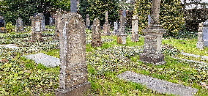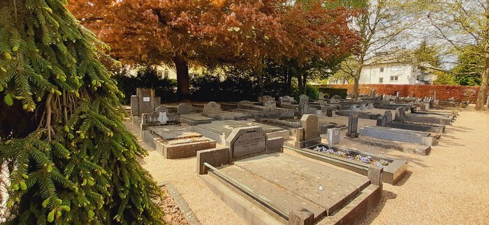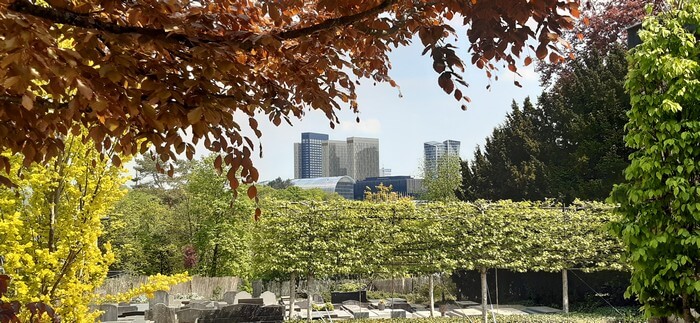 Z trasy. Luksemburg. Mały żydowski cmentarz wtulony w dzielnicę willową. Z cmentarzyka widok na biurowce urzędów unijnych. :