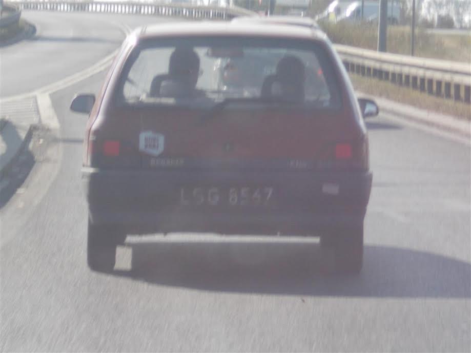 Ten samochód pstryknąłem z ręki w czasie jazdy. To białe na karoserii to wlepka. Kontur Polski, w środku napis „Dziki kraj”. Czyżby etnograf?: