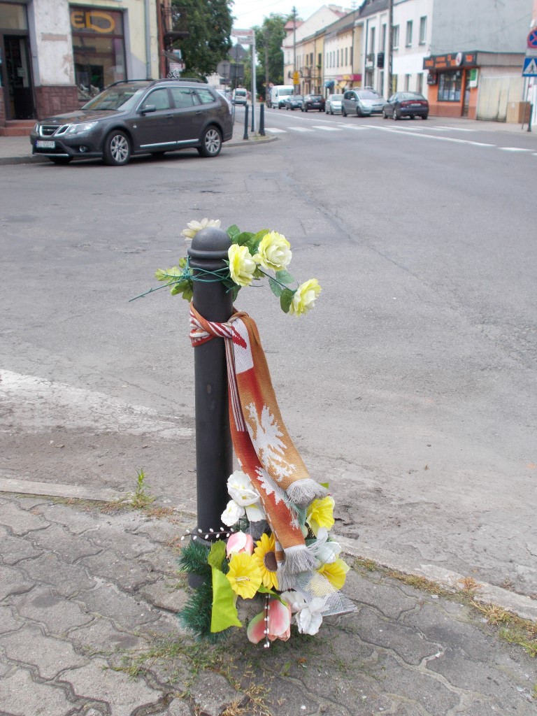 Rawa Mazowiecka, gdzie w samym centrum upamiętniono zapewne poległego kibica.:
