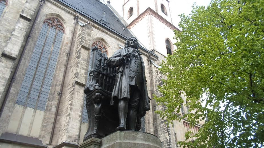 I zaraz refleksja, że to jednak nie Polska. Bo Bach stoi obok historycznego kościoła św. Tomasza (gdzie był kantorem) i ten kościół trochę poszarzały, lekko zaniedbany.: