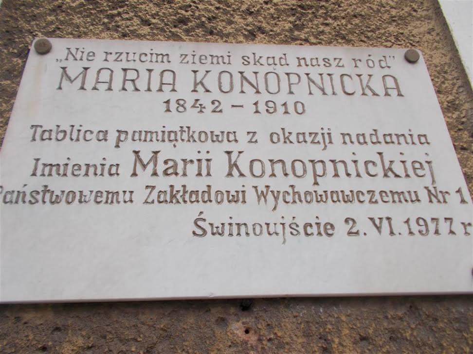 Tablica pamiątkowa na czymś w rodzaju poprawczaka. Ja bym im za karę kazał słuchać po trzy godziny dziennie liryki poetki. Chociaż wielu mogłoby się załamać…: