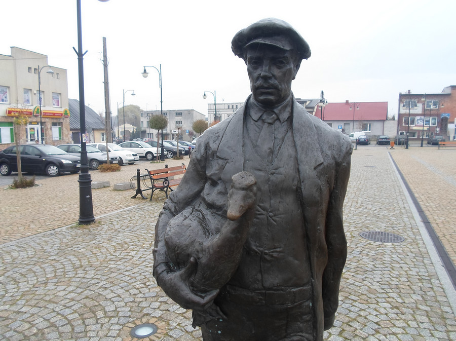 Przypomniało mi się. Tydzień temu wstąpiłem do Ślesina, który do niedawna był gęsim zagłębiem. Do tego stopnia, że na rynku stoi handlarz gęśmi odlany z brązu. I w porządku. Tylko dlaczego on handluje gęśmi w garniturze i pod krawatem?