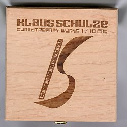 Klaus Schulze „Contemporary Works I – X” (10 CD). Podsumowanie dorobku. Leci popołudnie, wieczór i następny ranek non stop. Najczęściej powtarza się schemat: elektroniczna perkusja wybija jednostajny rytm, wzmocniony basem. Na tym tle rozwija się melodia na syntezator. Może „melodia” to za wiele. Raczej plamy dźwięku, odgłosy. Czasem bliskie elektrycznej gitarze, niekiedy wokalizie (a może to wcale nie przetworzony głos?). Wszystko w echach i pogłosach. Czasem jest to proste repetytorium dźwięków, w którym niemal nic się nie zmienia np. przez kwadrans. Jak byśmy słyszeli pracującą maszynę.: