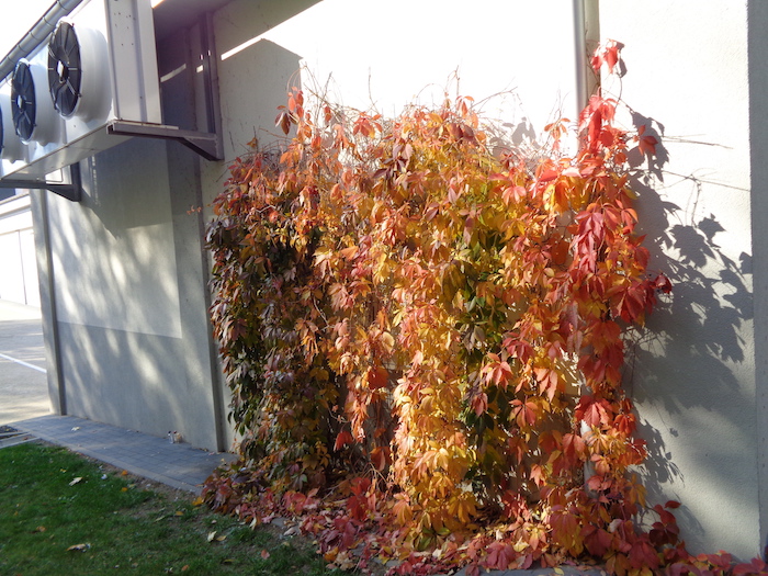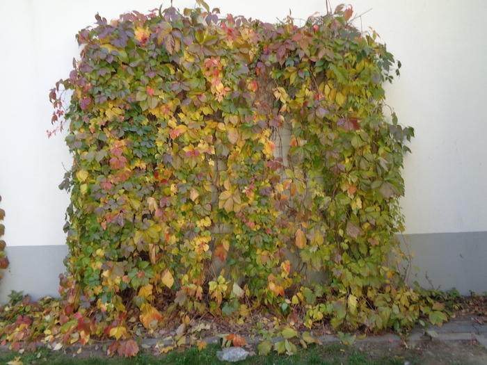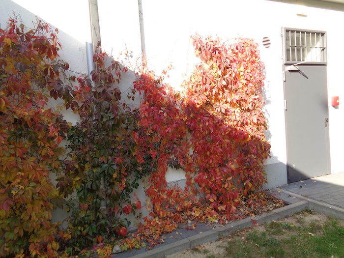 Jesień jest piękna tego roku. Nawet na tylnej ścianie Lidla. W oczekiwaniu na pomyślny finał zakupów.:
