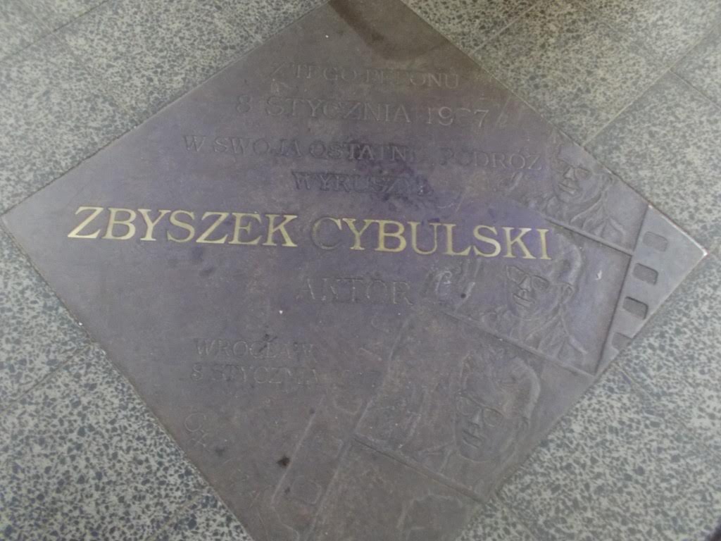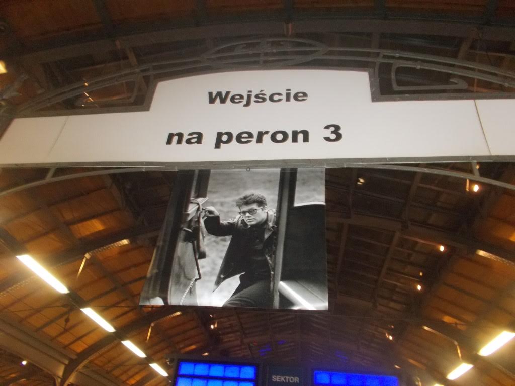 Idziemy na peron III, gdzie ma być tablica poświęcona Cybulskiemu.: