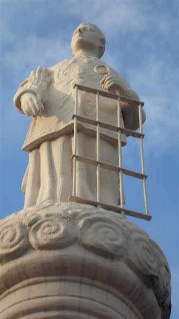 W Babimoście figura świętego Wawrzyńca Męczennika. Usmażyli go na kracie i ta jest jego atrybutem wyróżniającym. A propos: czy miłośnicy grillowania mają już swojego patrona?: