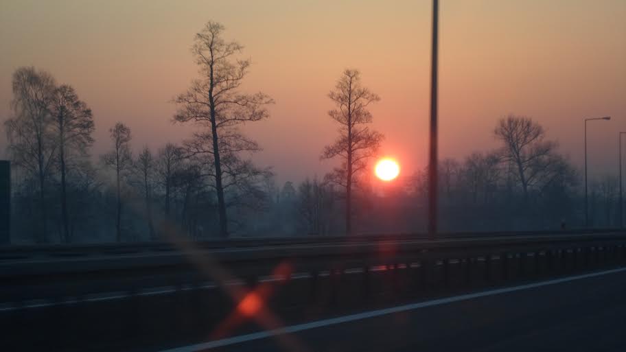 Piękny jest „wschód słońca w stadninie koni”. Ale przecież nie tak piękny jak jutrzenka nad A2 w okolicach Konina.: