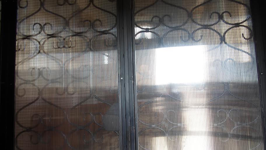 Zbrojona szyba ze szkła przemysłowego. Nie widać wprawdzie nic, ale przynajmniej Pan Jezus jest tu pilnowany fachowo.