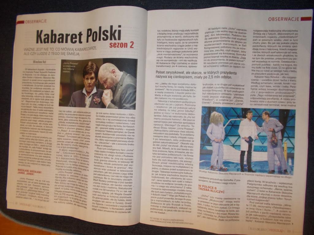 W tygodniku Przegląd o antyrządowym impecie kabaretowym. Podkreślam, że „Ucho prezesa” ma mniej więcej tyle odsłon, ile dzieci korzysta z 500+, więc nie liczyłbym na to, że kabarety obalą rząd.: