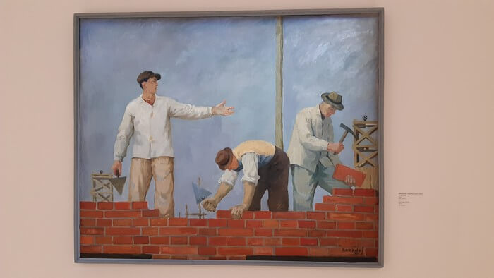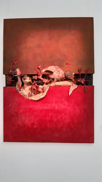 W Pawilonie Czterech Kopuł sami znajomi. Aleksaner Kobzdej, który tyle lat malował te swoje „szczeliny”, a i tak pamieta mu się ten obraz murarski…: