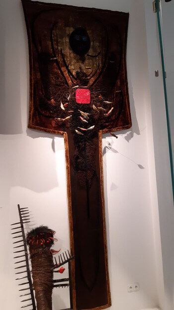 Zdzisław Beksiński. Metaloplatyka pt. Zwierzę, a obok: Postać. Musiał podpatrzeć w rodzinnym Sanoku. Pełno tam takich…: