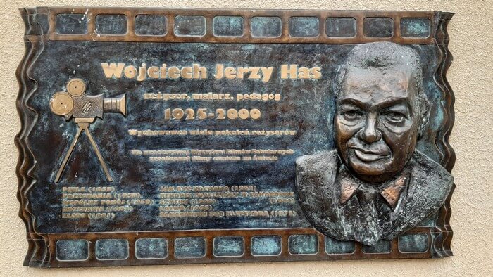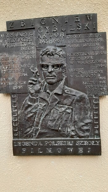 Z trasy. Wrocław. Przechodzimy koło hal zdjęciowych, w których Cybulski podpalał szklaneczki spirytusu za poległych kumpli.: