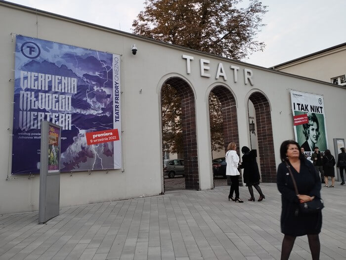 Wieczorem teatr w Gnieźnie, tradycyjnie skrajnie awangardowy. Goethe by swojej powieśći nie poznał, ale o to właśnie chodzi.: