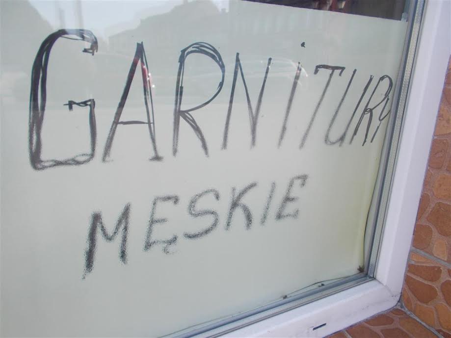 W witrynie pobliskiego sklepu odzieżowego najnowsza oferta. W dobie gender ta informacja jest kluczowa.: