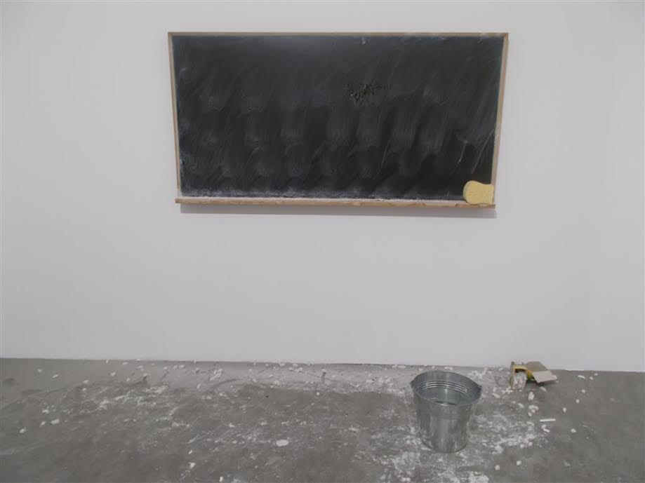 Obok tej instalacji monitor wideo przedstawiał wypowiedź autora, który chwalił się, gdzie to jej nie wystawiał. Z dumą podkreślał, że tablicę z wiadrem prezentował w domu kultury w Radomiu. Radom pewnie do tej pory nie może przyjść do siebie.: