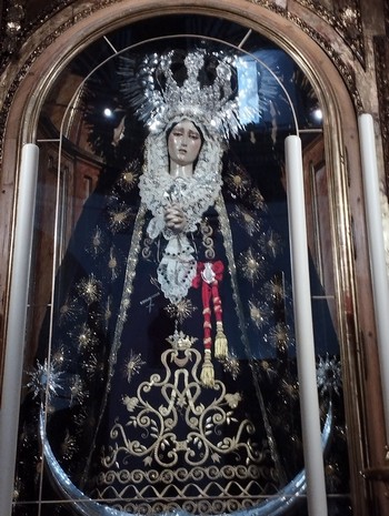 W kościołach Madonny przypominają lalki z wystawy jeszcze bardziej niż u nas (o ile to możliwe).: