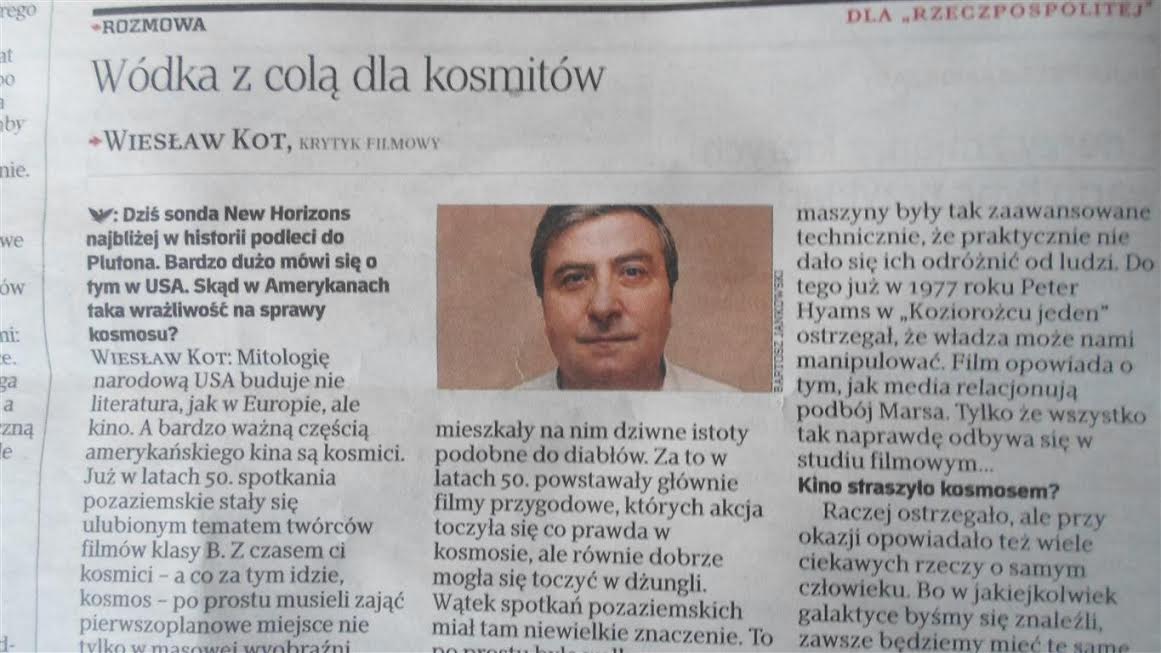 W Rzeczpospolitej wywiadzik o związku amerykańskich badań kosmicznych z filmem. Przypominam pomysł Gajosa (z filmu „Big Bang”) na powitanie kosmitów: „- Jak im nie w smak czysta, będzie kolorowa. A jak i to nie, to się zrobi >>tatę z mamą<<”.: