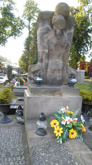 Pojechaliśmy na grób Antoniego Cierplikowskiego, tego słynnego fryzjera, który modelował włosy dziesiątkom gwiazd filmowych (Sarah Bernardt, Edith Piaf, Brigitte Bardot). Artysta grzebienia (pochodził i umarł w Sieradzu) został upamiętniony rzeźbą swego przyjaciela, Xawerego Dunikowskiego. Jest to bodaj jedyny nagrobek w Polsce, na którym zamiast zwyczajowego krzyża figuruje dość realistycznie przedstawiony stosunek płciowy: