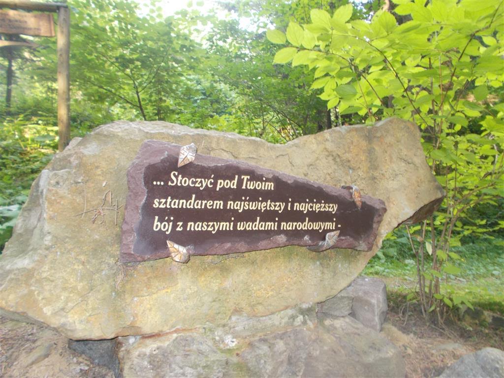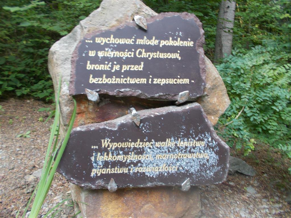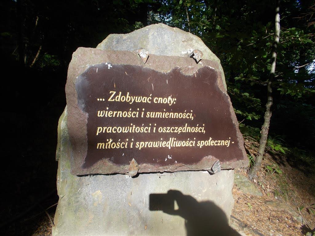 W dookolnym lesie fragmenty Ślubów Jasnogórskich Narodu. Cóż, ślubować łatwo, dotrzymać trudniej. Pokazuję tylko te przyrzeczenia, z których naród wywiązał się bez żadnych wątpliwości.:
