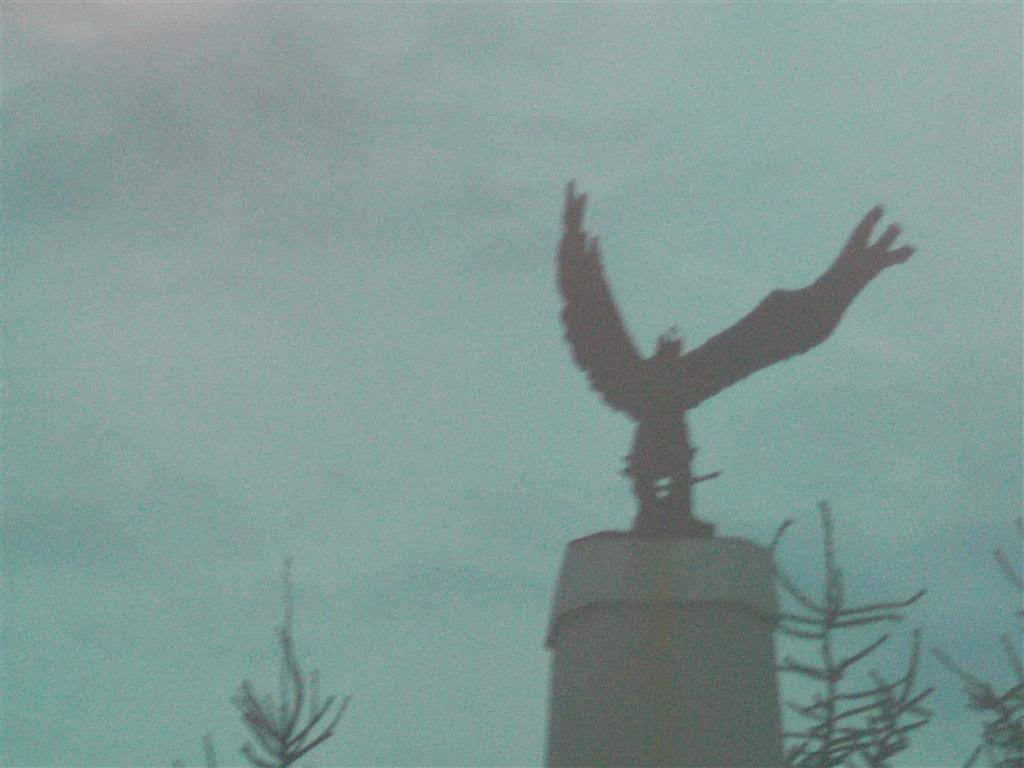 Po drodze do Kielc, parę sekund staliśmy na światłach w Zagórzu. Więc tylko pospiesznie ten orzeł z cokołu. Wprawdzie dość chudy, ale tak zakręconego jeszcze nie widziałem!: